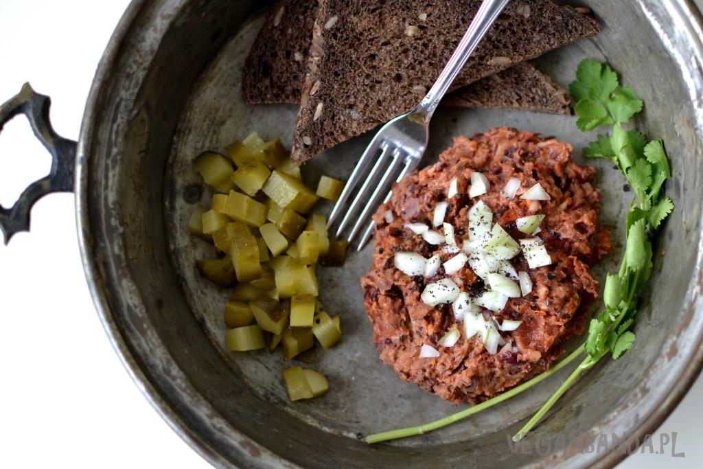 Prosty i szybki tatar w wersji wege. Świetna przekąska na Sylwestra, imprezę albo jako pasta do kanapek.